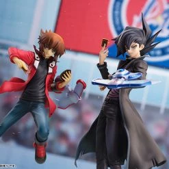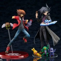 With his characteristic hairstyle, a fearless smile, and a duel disc prepped with a strong deck. Finely sculpted with true colors and standing in a strong pose. The fine wrinkles and decorations of the costume, even down to the torn hem on his coat that is also carefully colored.