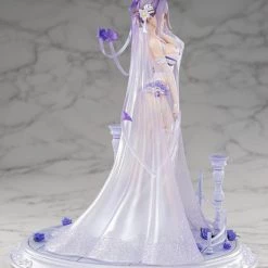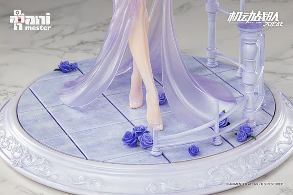This gorgeous wedding-themed figure includes a matching base for display. Most of her dress is made of clear materials with hints of violet throughout that compliments her short hair and the purple roses that decorate her hips and the ones that’ve fallen to the ground.
