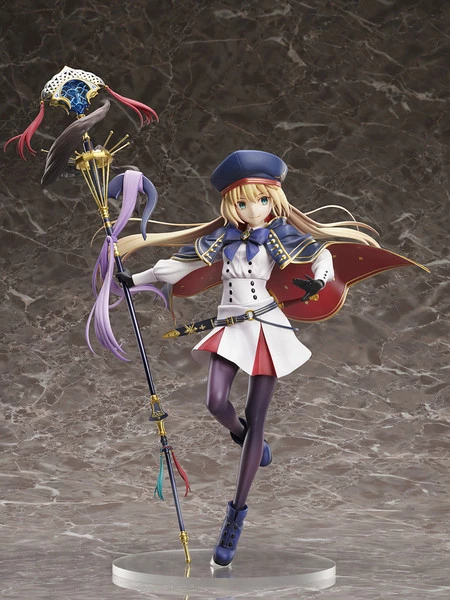 From the popular mobile game Fate/Grand Order comes Altria Caster in her second Ascension form! Her face has been sculpted to convey a delightfully innocent expression. Her cloak and beautiful hair have been carefully designed to look as if they were fluttering in the wind. The Staff of Selection has been recreated down to the smallest detail, made with the utmost care and quality. The jewels are made from a clear material, letting them give off a transparent glow. The hat and cloak are removable, allowing you to choose the look you prefer.