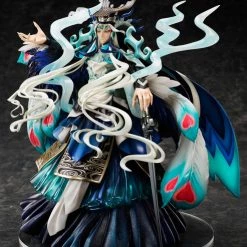 Standing at a towering 13” (33cm), the elaborate sculpt of this figure truly captures the essence of Qin’s imperial solemnity. Qin’s dress, armor, crown, and sword are all crafted in exquisite detail. The wings adorning Qin’s back are sculpted in two layers and painted in beautiful patterns. Multiple layers of clothing are visible under these wings as well. An elegant, dynamic finish to the hair and clothing brings Qin’s majesty to life right before your very eyes. Finally, clear components are used to construct the corners and mercury framing Qin’s head, as well as for the wings on both arms in order to truly draw out the emperor’s splendor.