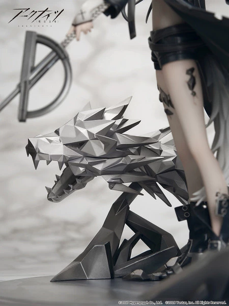 The figurine is a perfect reproduction of the original character illustration in the game. Such details as the ground near her feet, the grimacing smile upon her face, and her long white hair that fades to black are all faithfully reproduced in the figurine.
