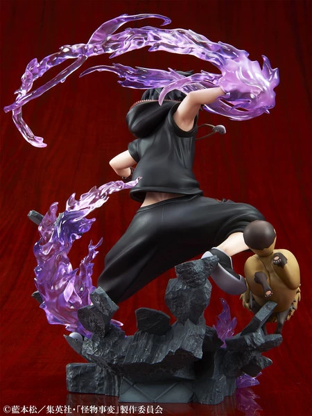 Poised atop a rubble base Kusaka is seen as power swirls around him forming in the palm of his hand. His focused gaze is locked on target as he takes a lunge forward ready to strike! The sway of his clothes and stance give a unique motion with his attack.