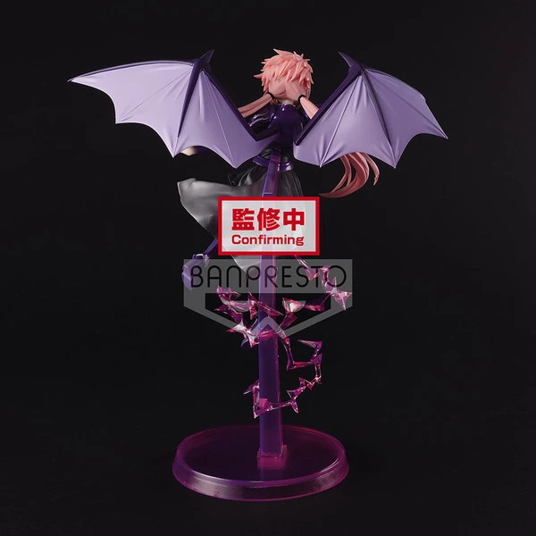 Milim is seen soaring in the sky with her purple dragonoid wings outstretched. The pink base with spiraling energy complements the horn on her forehead and her long pink hair in twintails. With hand outstretched and in her shiny purple armor, this demon lord is ready for battle! Add her to your collection today!