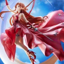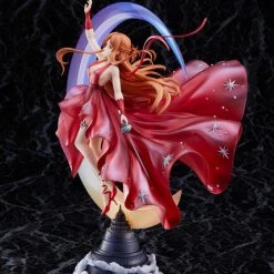 Measuring almost 15 inches tall on her beautiful moon base, Asuna has been sculpted in a beautiful red translucent dress holding her sword, and reaching for the stars.