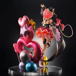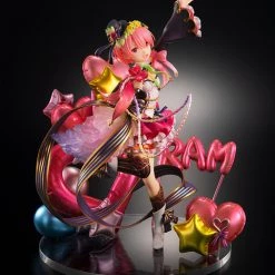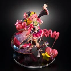 Ram is posed performing for her fans in a pink color scheme, created with great attention to detailโfrom the gorgeous translucent parts in her hair to to the dynamic sculpt of her dress, this entire figure seems to have come to life! Surrounded by metallic balloons, Ram stands around 10 inches tall on the included clear base.