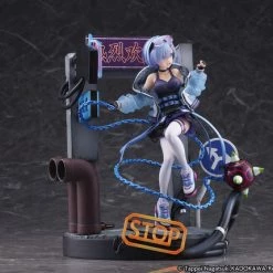 Neon lights, street signs, and concrete surround Rem in this dynamic display of a busy suburb. No worries as Rem’s adorable expression and faithful weapon of choice remain true to the character design as once seen from the series.