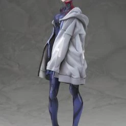 The contrast between the color, form and texture of the plug suit and the light gray hoodie is also a highlight. The clear material with a light gradation paint on the hair also has a beautiful finish that strongly impresses the character’s transparency.