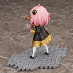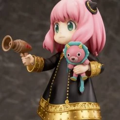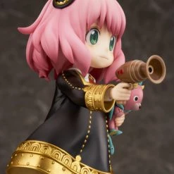 Anya is seen wearing her Eden school uniform and posing brilliantly on the cobblestones with her stuffed toy chimera and a toy gun in her hand! Her cute expression and short pink hair remain true to her character’s design as seen in the series. Anya’s uniform has a luxurious design with gold decoration on black. Hair ornaments, socks, and even shoes have been carefully modeled.