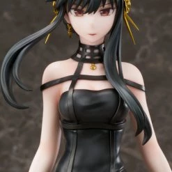 Yor is seen wearing her assassin outfit and poised elegantly on the cobblestones with her weapons of choice in hand! Her serious expression and long black hair remain true to her character’s design as seen in the series.Â