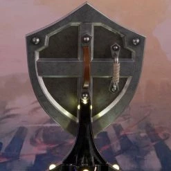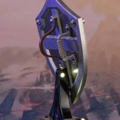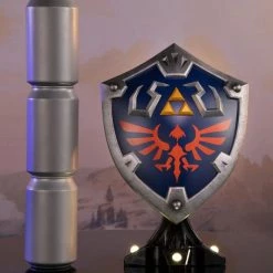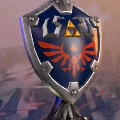The blue front with silver borders, the Triforce symbol, and Hyrule’s crest are staples in its classic design, and this particular statue was inspired by the design from The Legend of Zelda: Breath of the Wild.