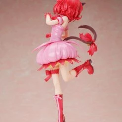She shows off her bright pink battle costume with a cute pose and an enthusiastic smile, ready to serve the future of the Earth! Little details like the pinked edges of the ribbon tied around her right leg and the motion of her hair will make you smile. Even her base, shaped like a pink puffy cat paw, is incredibly adorable.