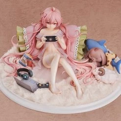 The figure is based on her appearance after upgrading. Evanthe is eating, drinking and listening to music while gaming on her day off as a goddess.