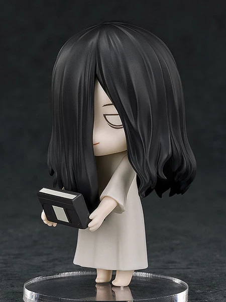 The Nendoroid comes with two interchangeable face plates: a grinning face and a vicious evil face for when she attacks her victims. Optional parts include Sadako’s well and a video tape. A background sheet to display her crawling out of a TV is also included. In addition to standard front hair part, a front hair part to display her with one eye visible and a front hair part to display her with her hair falling to the ground are included. Enjoy using these three hair parts to create all kinds of situations and poses!