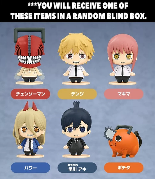 From the anime series “Chainsaw Man” comes a set of Pocket Maquette collectible figures! The lineup includes Chainsaw Man, Denji, Makima, Power, Aki Hayakawa and Pochita for a total of six varieties! Interchangeable parts are included to display them sitting (excluding Pochita). Be sure to add them to your collection!