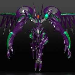 The model features fully articulated joints. Eight assimilation cables, a Luger Lance, a Luger Lance firing effect part, a Worm Ring, two back stabilizers and various replacement hand parts are included. Fafner Mark Nicht can be displayed firing its assimilation cables and deploying its homing laser oscillator. Its back stabilizers can also be displayed in standard mode or light mode. The worm ring can be equipped to its hand part.
