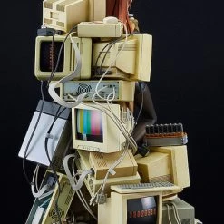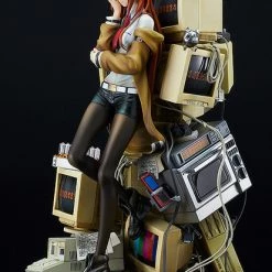 The figure is based on an illustration by huke, an illustrator who worked on character design for the game. The heap of retro PCs and Future Gadgets, appearing like a vision of the mind’s eye made manifest, have been carefully modeled and painted with weathered paint to perfectly captured the atmosphere of a laboratory. Standing in the middle of the scene is Kurisu Makise—slender, beautiful and scientifically dressed.