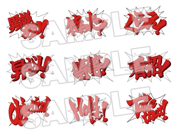 Optional parts include his courtroom desk, a court document, his Magatama, and a Psyche-Lock effect sheet along with “Objection!”, “Hold it!” and “Take that!” text plates in English, Japanese and simplified Chinese (total of 9 text plates).