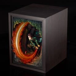 Tanjiro has been faithfully captured in figure form in his appearance from the 19th episode of the anime’s first season, using the Hinokami Kagura Dance technique for the first time. Even the background from the scene has been preserved in figure form.