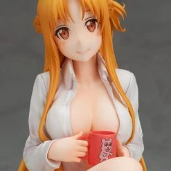Wearing only a white shirt, which reveals a majority of her chest, Asuna looks slightly upwards in your direction with a sweet warm smiling expression. Her long orange hair lays beautifully down her back and remains true her character design as seen in the series.