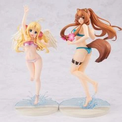 Raphtalia has been captured in figure form enjoying her time playing on the beach as she takes a break from the battlefield. Her blue swimsuit perfectly contrasts with her fair skin, while her different-from-usual ponytail hairstyle has been sculpted to appear fluttering in the wind behind her, making for a dynamic figure with plenty of details to look at. The top and bottom portions of her pareo can also be removed, allowing for multiple display options.