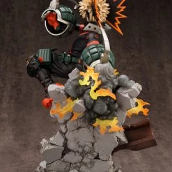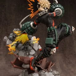 The pose captures Bakugo the moment he shoots up into the air using his Explosion Quirk. The costumeโs details are faithfully recreated, and even parts such as the effects and base are sculpted meticulously, giving the entire piece a sense of realism.