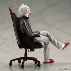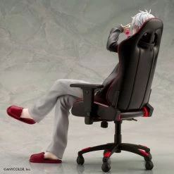 Features like his sharp vampire nails and wrinkles in his unzipped tracksuit and sweatpants have all been faithfully recreated, complete with a pair of removable slippers. His gaming chair base replicates the differences in materials by varying the shine of the paint.