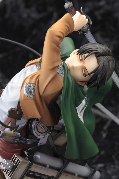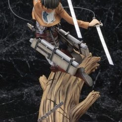 Sculpted by Shin Tanabe, Levi is over 11 inches tall (1/8 scale) as he hurtles over the trees, and his matching display based makes him the perfect companion to the other Attack on Titan ARTFX J Statues: Eren Yeager and Mikasa Ackerman.