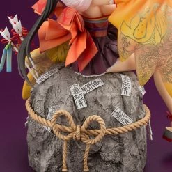 The hair ornaments and the arrows used to drive off evil are also reproduced in great detail. The gold coloring used for the base yellow theme of the kimono coupled with vivid red highlights creates a beautiful finish on this statue. The talismans on the giant boulder can be affixed wherever the user would like.