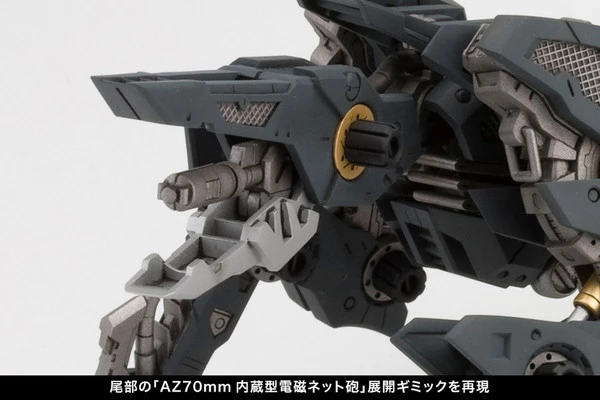 - The tail part is equipped with an internal “AZ 70mm Electromagnetic Net Gun” that can be exposed by opening the armor.