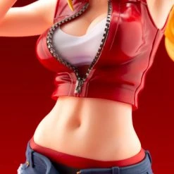 This statue puts a spin on the Legendary Hungry Wolf’s outfit while retaining the iconic American style with the red jacket, denim jeans, and sneakers. The print on the cap has been changed from “FATAL FURY” to “FATAL CUTIE,” and the jeans have been made into denim shorts! This statue is packed with details including the skin peeking out from between her jacket and white shirt.