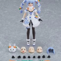 She comes with four face plates including a smiling face, a smug face, a “Peko-gyaku” (bullying Pekora) face and a panicked face. She comes with her rocket launcher, a carrot and a Nousagi as optional parts. She also comes with an alternate front hair part with sunglasses attached as well as a drooping ear part to give her a sad look.