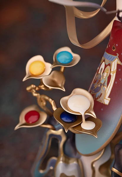The golden Deer King, “the Nine-Colored Deer”, said to be a past reincarnation of the Buddha, has been gorgeously anthropomorphized by illustrator rei. The elegant look of the original illustration has been perfectly captured in figure form. The girl’s long furisode sleeves feature a depiction of the original cave drawings.