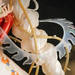 The crystal ball adorning the top of the figure has been transformed into a beautiful smiling girl. Each and every detail, from the gourd bottle in her hand to the various decorations adorning the tower, has been elegantly sculpted. The delicacy and beauty of the Pearl Pillar of the Buddhist Shrine has been carefully preserved, including the carved appearance of the base.