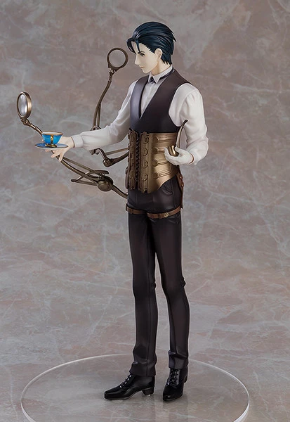 His neatly groomed appearance, gentlemanly shirt and trousers, corset and magnifying glass arms created with hard-textured paintwork have all been carefully captured in figure form with detailed sculpting and paintwork to clearly represent the differences between each material. Enjoy viewing him from every angle.