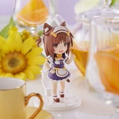Standing in cute chibi-form, her brunette hair, ears and tail, as well as her maid outfit, remain true to her character’s design. She is seen striking a cute pose worthy of any fan’s collection.