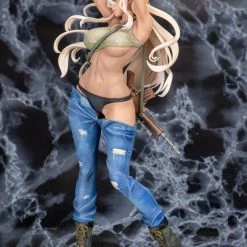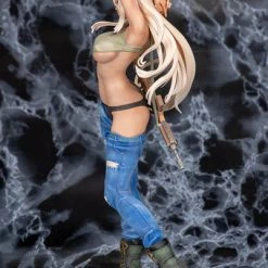 Her blonde hair floats behind her sculpted tan body. Her crop top slightly revealing her chest and she puts her arms behind her head. She stands confidently as the rugged and ripped jeans she is wearing begin to slide down her thighs. Get this figure today and she will stomp out your friends’ collections!