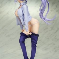 Shion is seen with her pants lowered down to her knees, panties exposed, and her blouse hanging wide open! Quickly peering over her shoulder, her long purple hair moving with the motion, she develops a blushing expression as she sees you catching a glimpse!Â