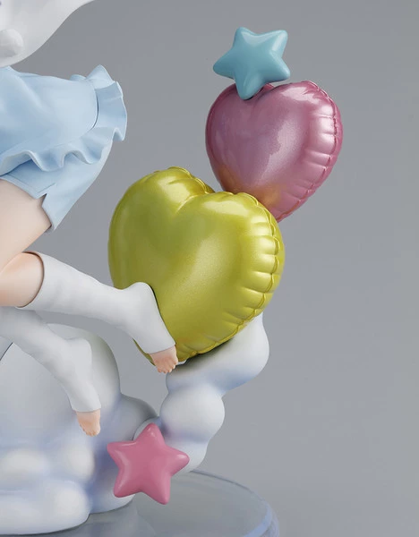 Chino’s wearing light blue pajamas that match her braided pigtails and a Tippy hoodie. She seems to be almost floating in mid-air! Clouds, stars, and heart-shaped balloons flow upwards from the base for a dynamic sense as she becomes weightless in a dream.