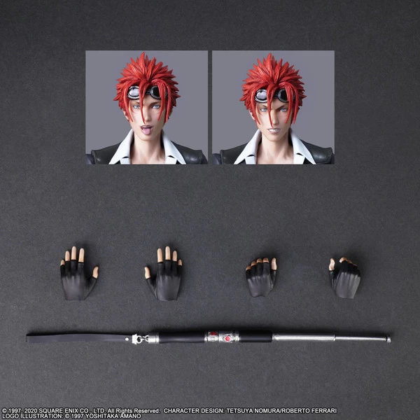 Reno comes with his weapon of choice, a baton, various interchangeable hand pieces, and two additional head pieces that feature different facial expressions. This figure encapsulates Reno’s capricious and elusive presence, just like in the game. Figure includes display stand.