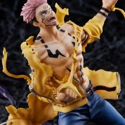 In a dynamic sculpt Sukuna is seen tearing his shirt to shreds as he laughs evilly ready to curse his enemies. Highly detailed from the symbolic pose as to rip his “Yuji form” off he seems to have gone completely mad!
