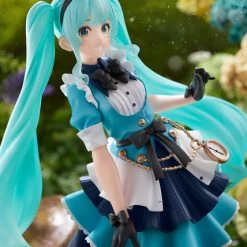 Hatsune Miku enters the stage as our newest AMP Figure! This Alice Ver. sees Miku in an adorable blue and white dress with a white pocket watch and bow details.