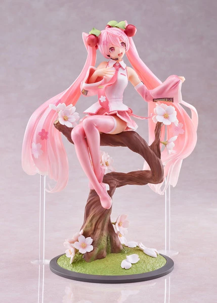 Miku is sitting atop a Sakura branch that is adorned with soft flower blossoms and petals. She will be a fantastic addition to any Hatsune Miku collection!