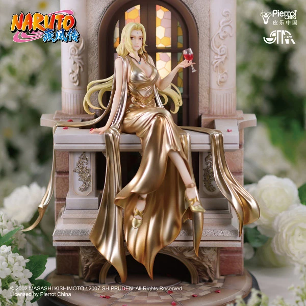 From the world of Naruto Shippuden comes a new 1/7 scale STAREXVA figure featuring the lovely Tsunade in a golden gown as she sits relaxing on the ledge of a balcony.