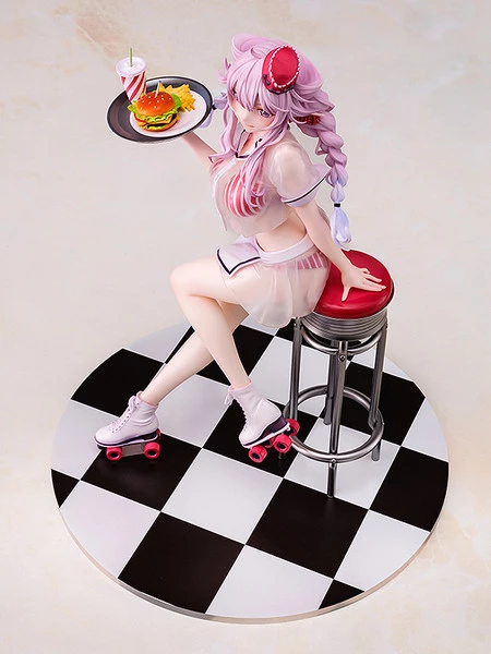 Featuring a cute and retro American diner theme, Marinoa is wearing a translucent top and skirt. Marinoa’s long legs and fine details like her earrings, belly button and elf ears have all been carefully captured in figure form.